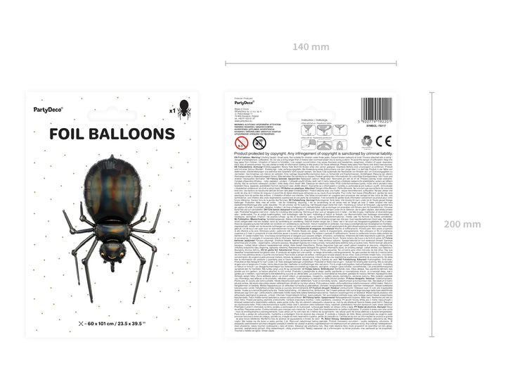 Glossy foil balloon Spider in black colour with gold metallic print, size approx. 60 x 101 cm (23.5 x 39.5 '').
